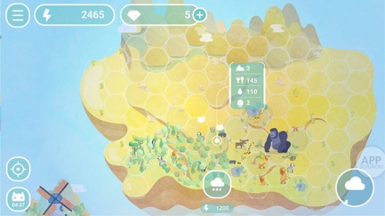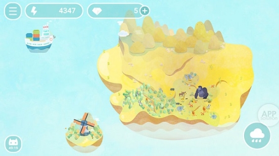 閑來無事時,打開游戲,調(diào)節(jié)下天氣,下絲絲細(xì)雨,轉(zhuǎn)動風(fēng)車獲取下雨所需要的能量,給你的小島帶來一片綠衣。每當(dāng)你發(fā)現(xiàn)新物種都會有一份激動吧!如果你偷懶了沒有給小島降雨,那么草原的衰退、動物的滅絕則是對你的懲罰。