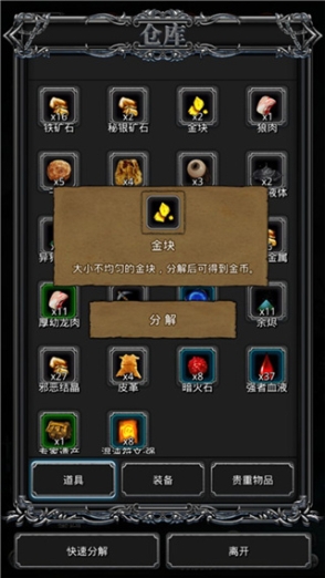探險中會遇到礦點,通關探索可以獲取金塊等回到庇護所分解可以獲取金幣。