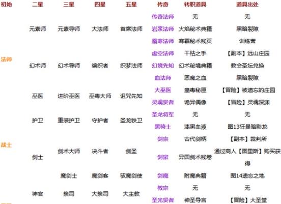 《地下城堡2》各職業轉職分支樹