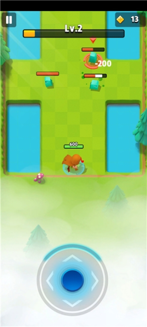 2、操作方面同樣非常簡單,玩家按住屏幕即可喚出虛擬搖桿,向指定方向滑動角色便會進行移動;遇到敵人后,只需松開手指,角色便會使用弓箭自動攻擊。